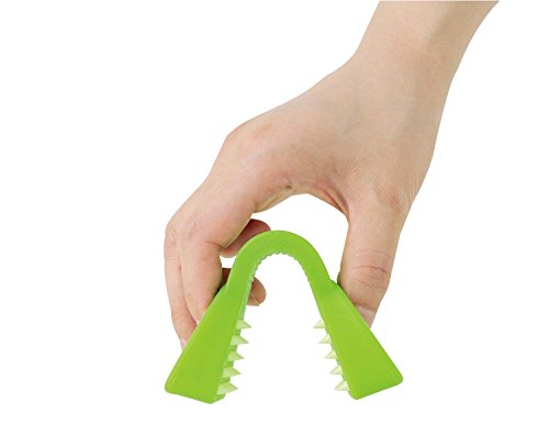 ニンニクやショウガなどにおいのあるものや、山芋などすべるものをつかむときに活躍するのがこの指楽トング。三本の指で軽く挟むだけで、トゲトゲの突起が食材をしっかり支えてくれます。