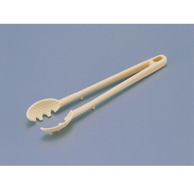 新潟県燕市の業務用メーカーである株式会社イケダの製品で、世界初のすくい取りができるすぐれものです。トングの先端部分をぴったり閉じるとスプーン状に変身します。