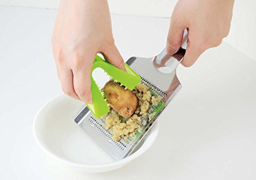 シリコンゴムの柔らかい素材なので、自分の指のような感覚で使え、おろし金などの刃を傷めることもありません。また、小さなお子様に包丁やピーラーの使い方を教える時にも、安全ガードとして使えるので安心です。