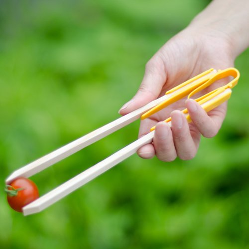 お箸に慣れていない外国人の方や、お年寄り、けがなどで手が不自由な方にもおすすめです。また、太い方を下にして装着すると、トングとして使えるので、バーベキューやパーティーでの取り分けに便利ですね。