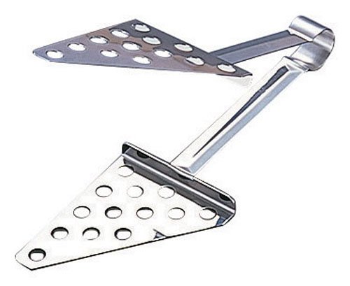 レストラン向けの業務用で、つかむ部分が三角形で平らなので、くずれやすいサンドイッチもやさしく挟むことができます。耐久性に優れ、お手入れしやすいステンレス製で、金属加工で有名な新潟県燕市にある日本メタルワークスの製品です。