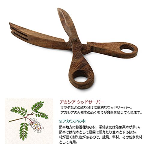 アカシアの天然木を使用した、おしゃれなハサミ型のウッドサーバーです。本物のハサミと同様に指にかけて使えるので、使い勝手は抜群です。キッチンやテーブルにあるだけで優しい雰囲気を演出してくれ、お子様のお手伝いにも安心です。