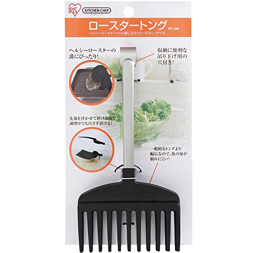 インテリア用品からペット用品まで幅広い商品を扱うアイリスオーヤマのトングは横幅が広いのが特徴。同社のヘルシーロースターの溝にぴったり合うように作られた専用トングですが、魚焼きグリルから魚をきれいに取り出すのに活躍します。