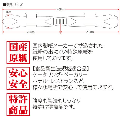 特殊加工された紙を使用しているので、水も油も染み込まず、しっかりつかめます。国産原紙を使い、食品衛生法規格適合品、特許取得商品なので安心して使えます。