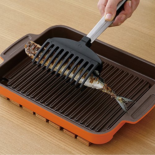 ヘラとトングが一体化したアイディア商品です。グリルで焼いたお魚を崩さずきれいに盛り付けたり、フライパンで焼いたお肉ややわらかいお料理も簡単に挟めるので便利です。